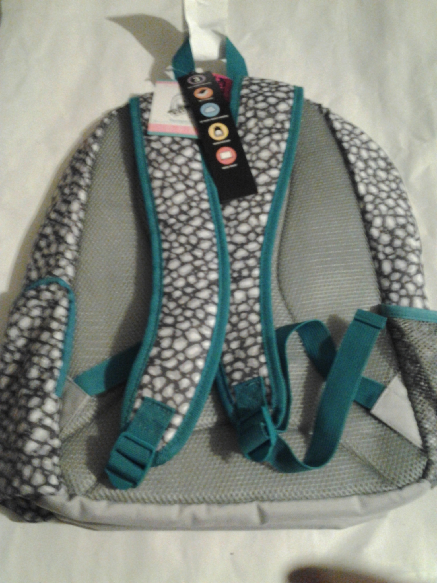 DDC 18" Leopard Print Backpack - Grey/Blue