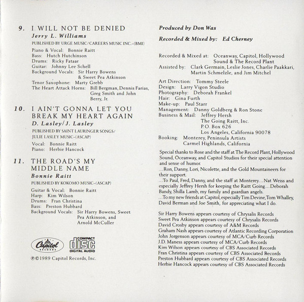 Bonnie Raitt - Nick Of Time (CD, Album, Club)
