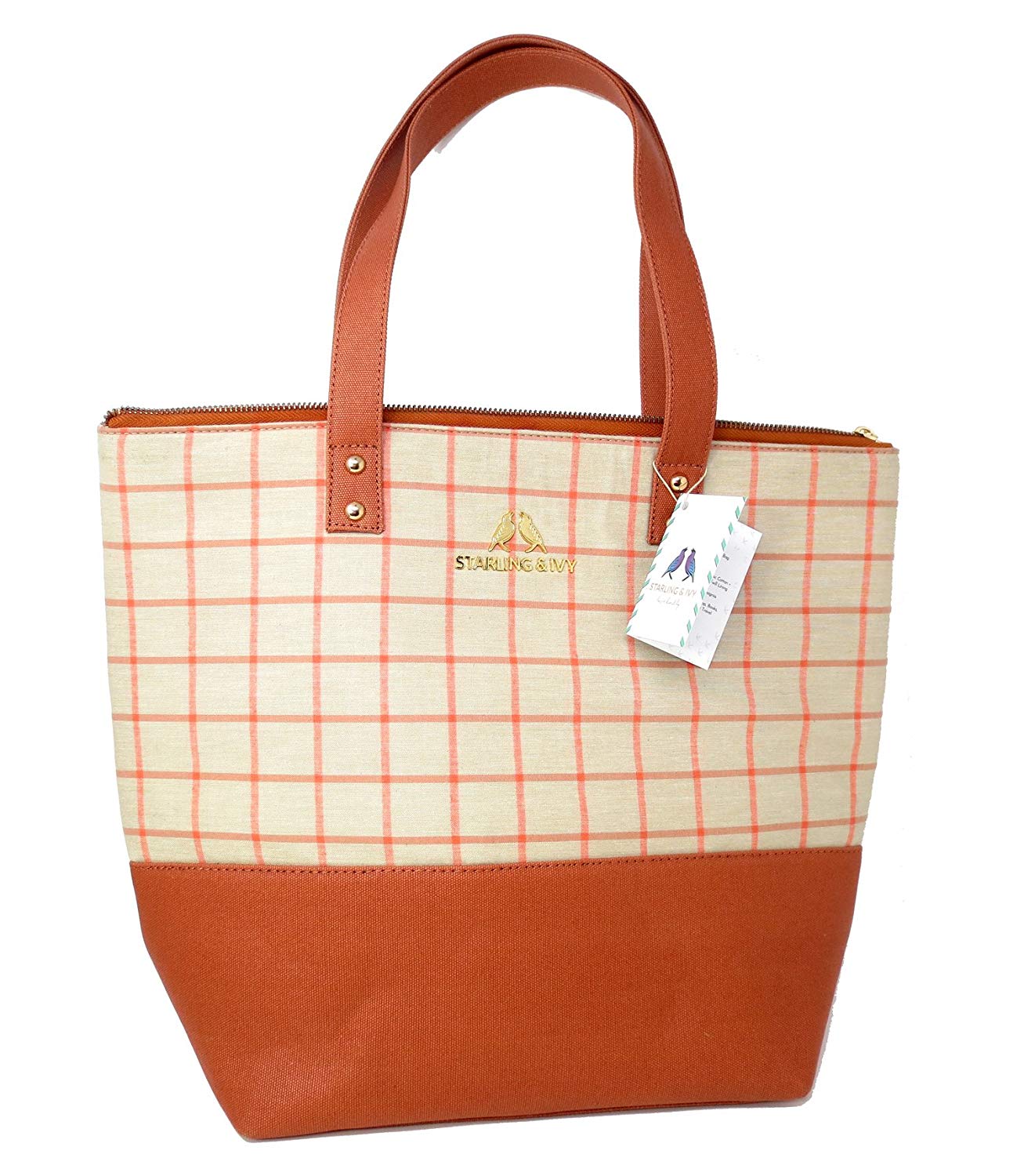 Starling & Ivy Two Tone Sienna Plaid Vegan Organic Waxed Cotton Canvas Tote Handba
