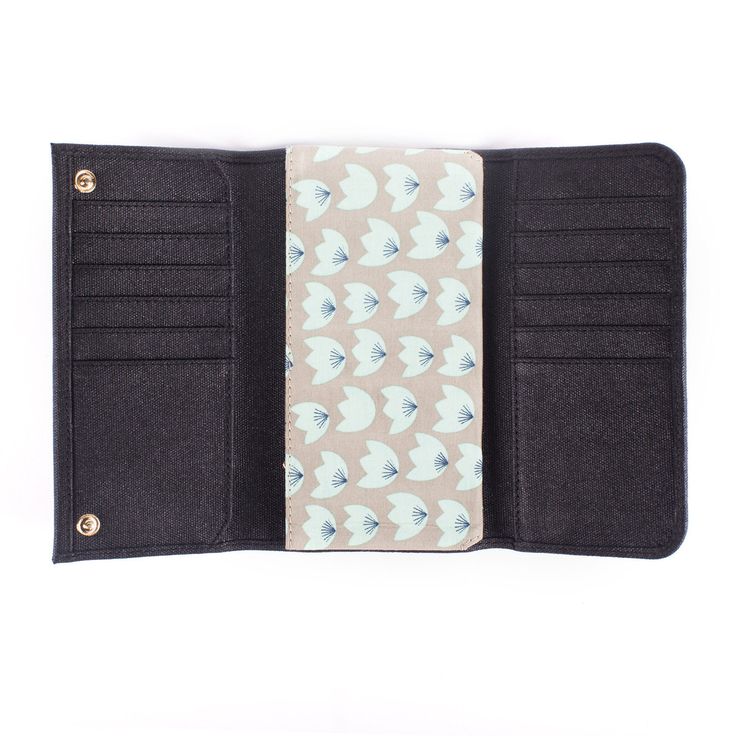 Starling & Ivy Black Waxed Canvas and Organic Cotton Trifold Wallets