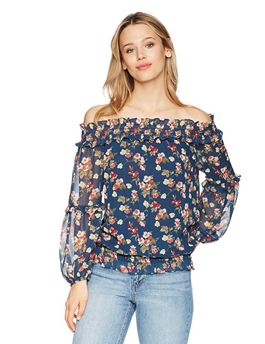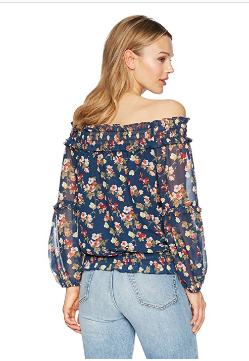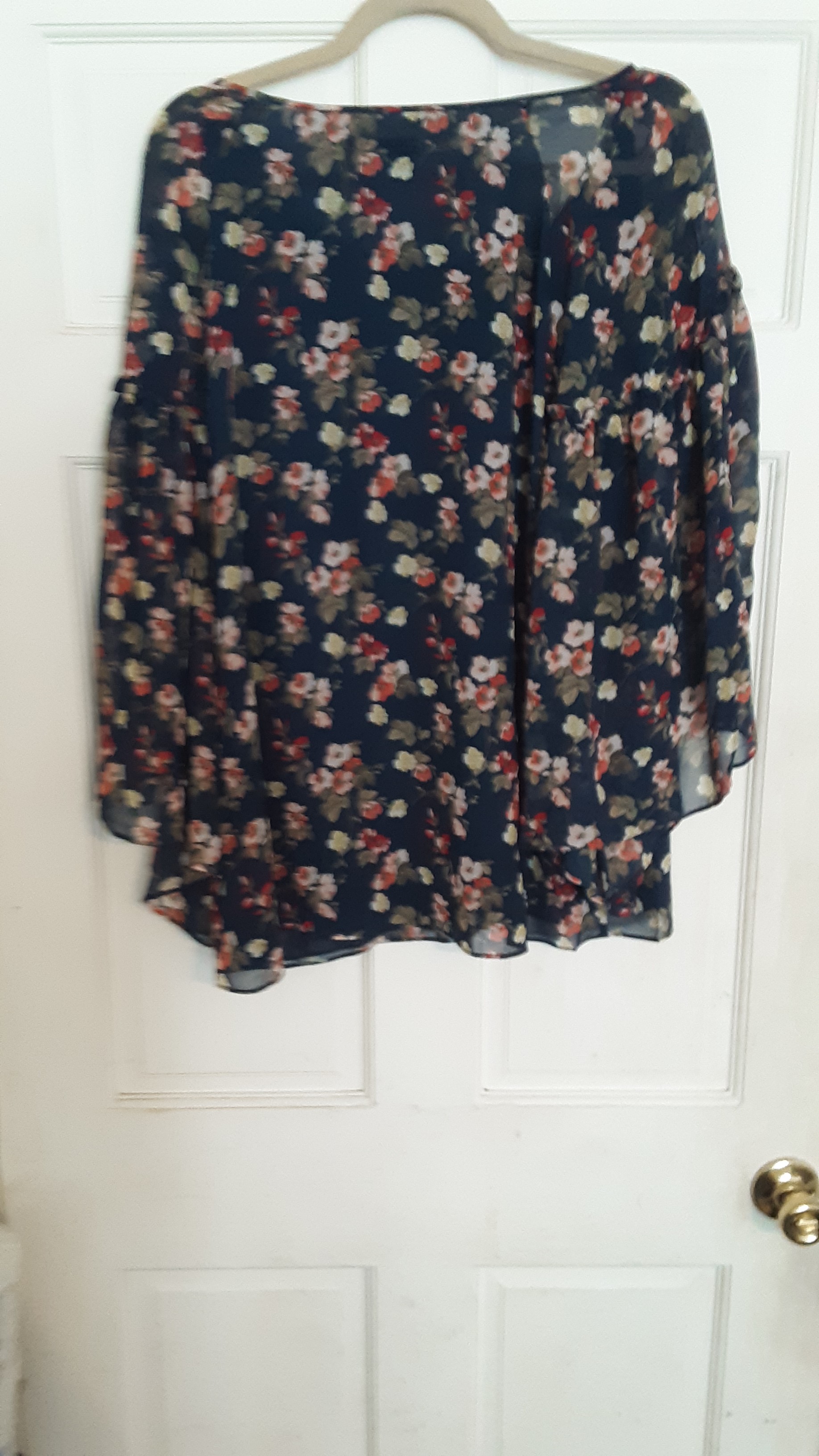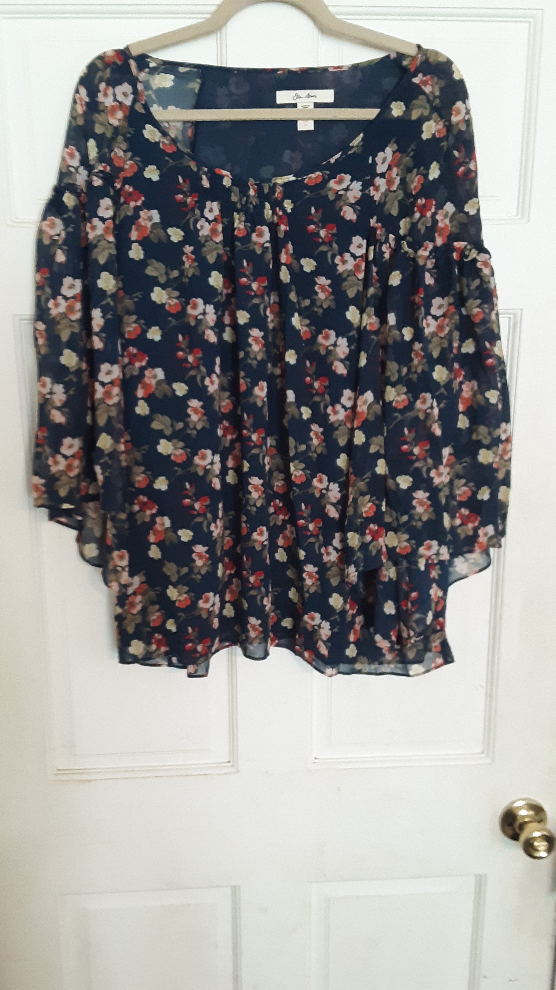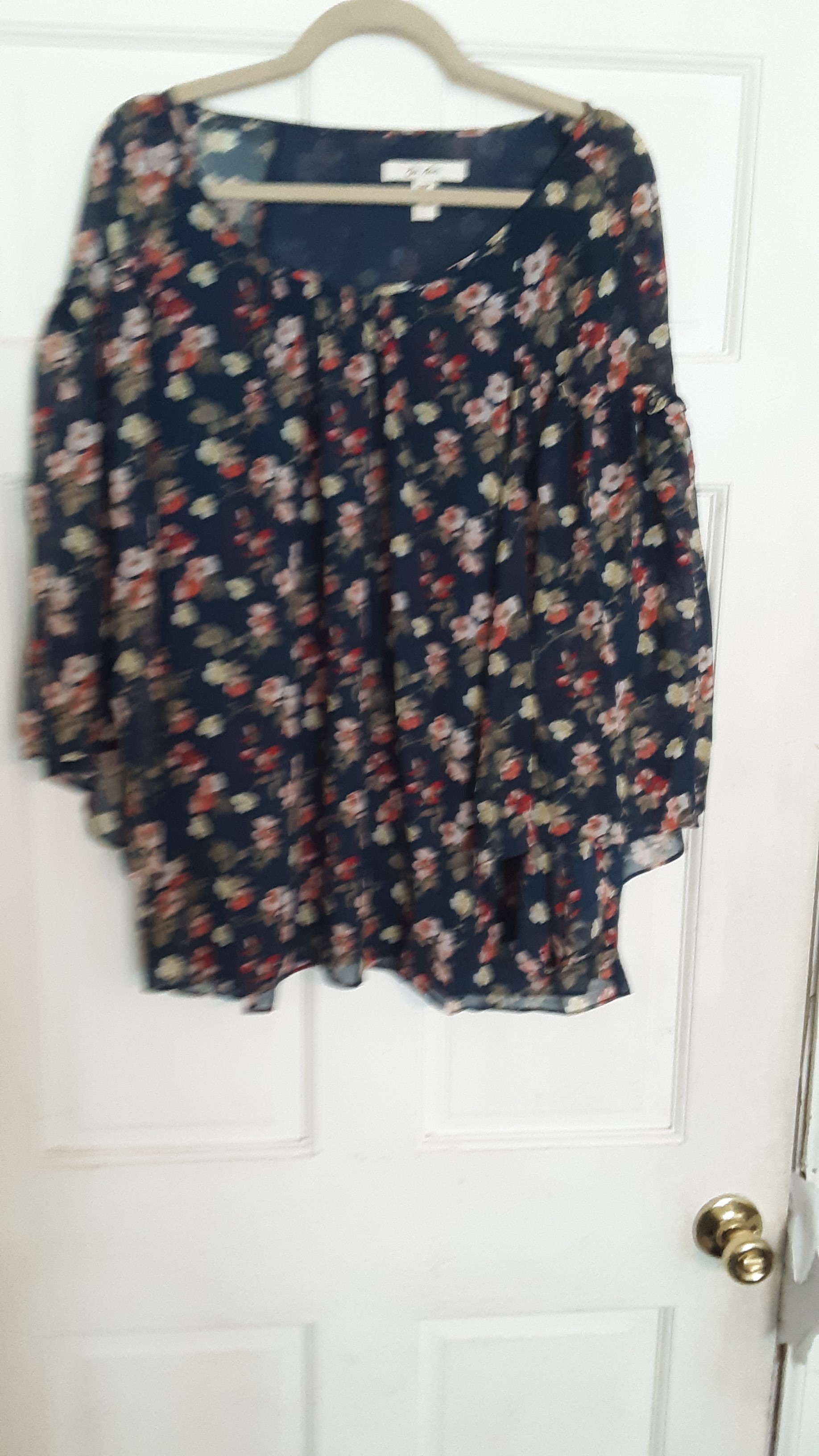 Ella Moon Women's Standard 3/4 Sleeve TOP, Navy/Multi Painted Floral XL