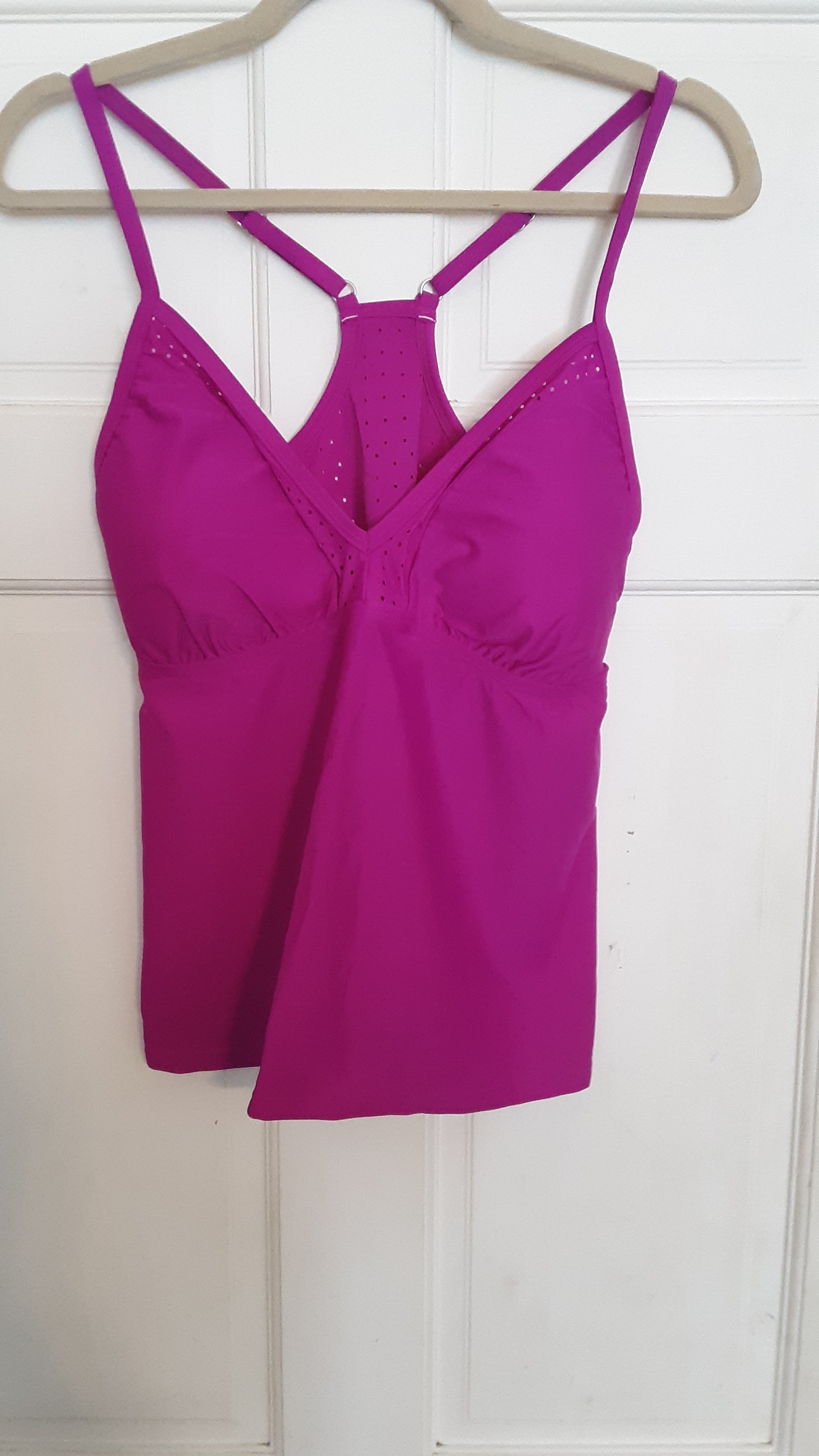 Coastal Blue Women's Swimwear Laser Cut Tankini Top, Punchy Purple, L