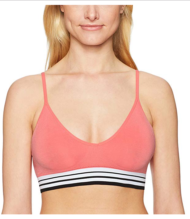 Mae Women's Seamless Plunge Lounge Bralette (for A-C cups), Coral, Small