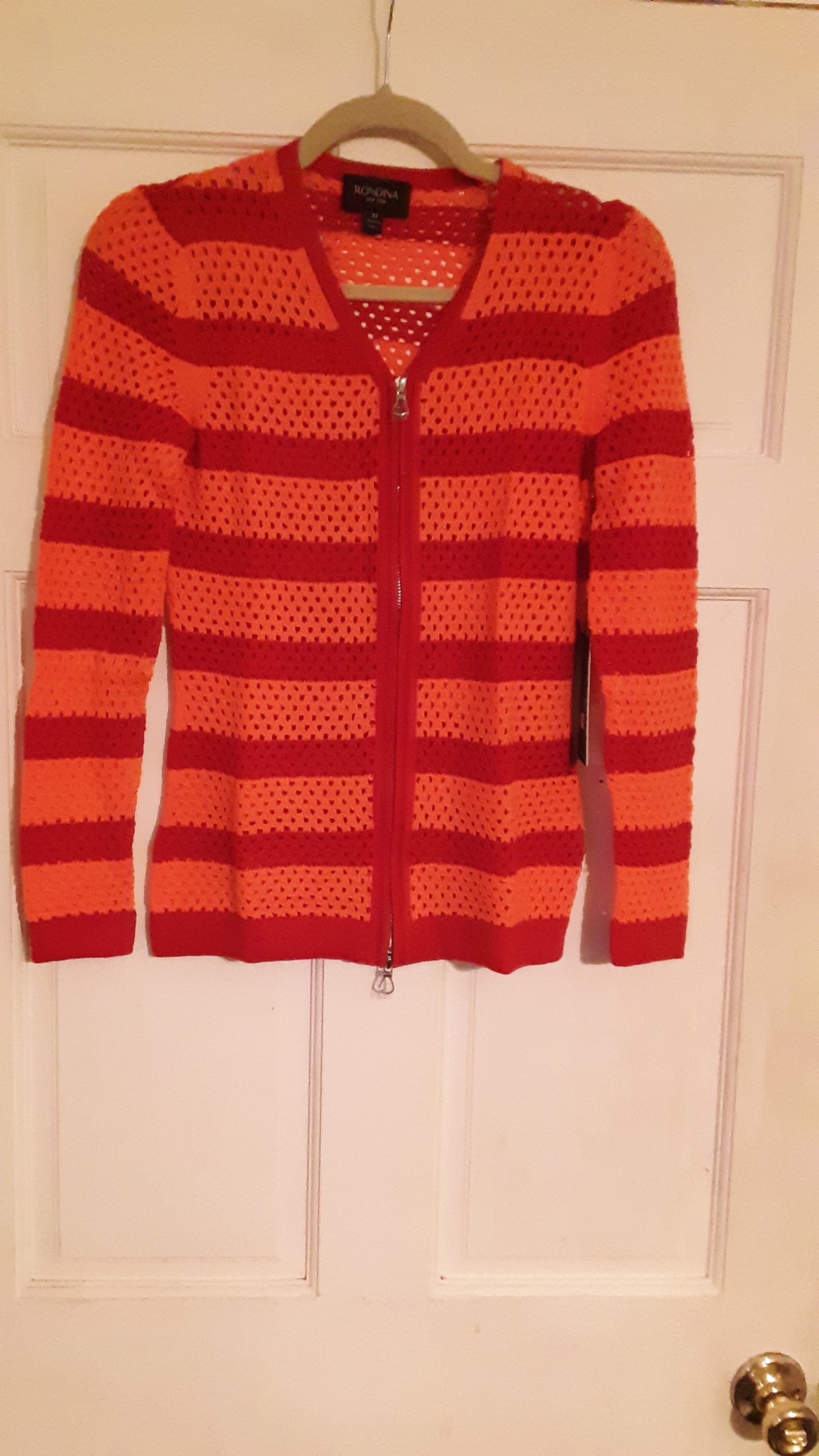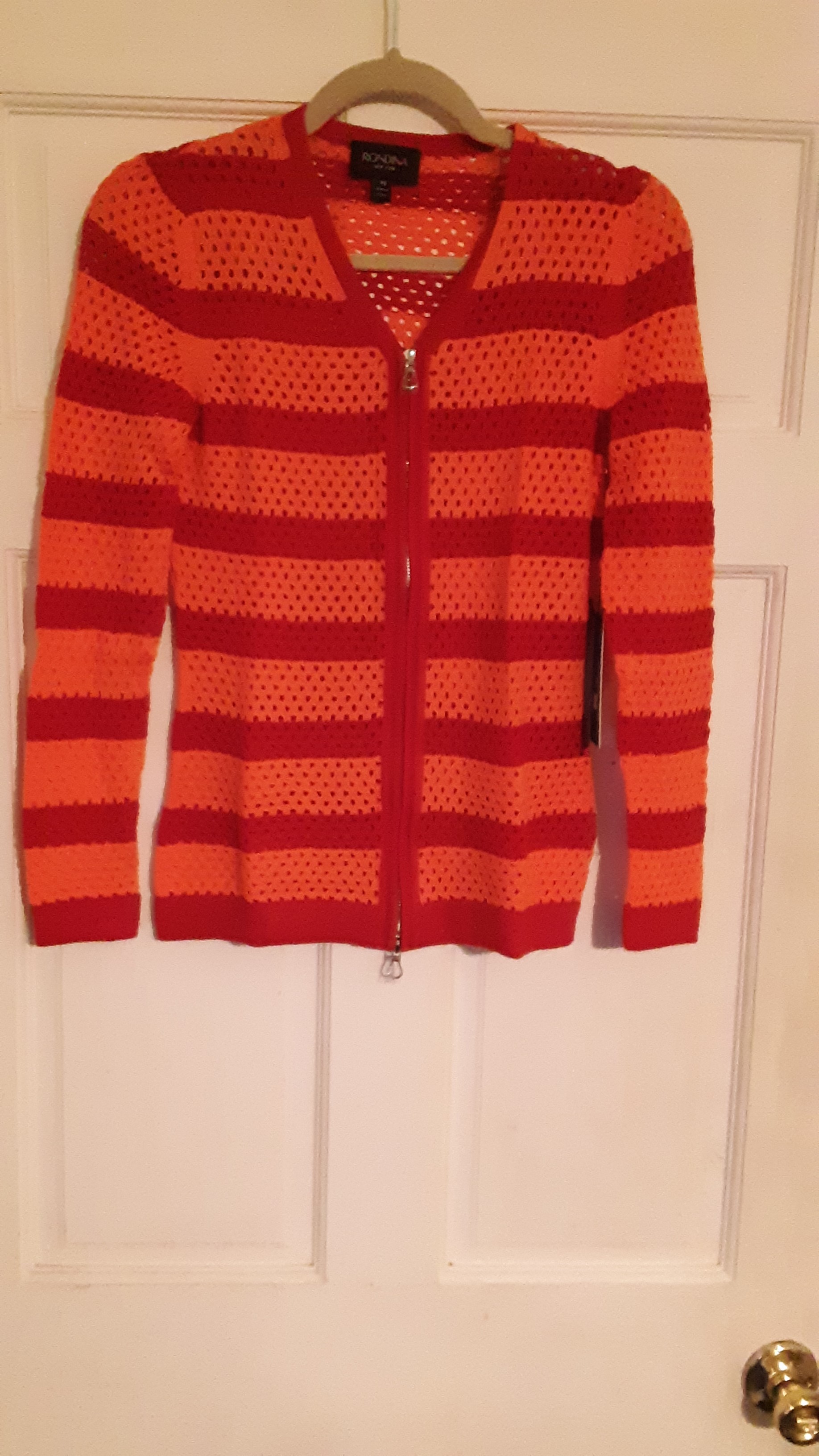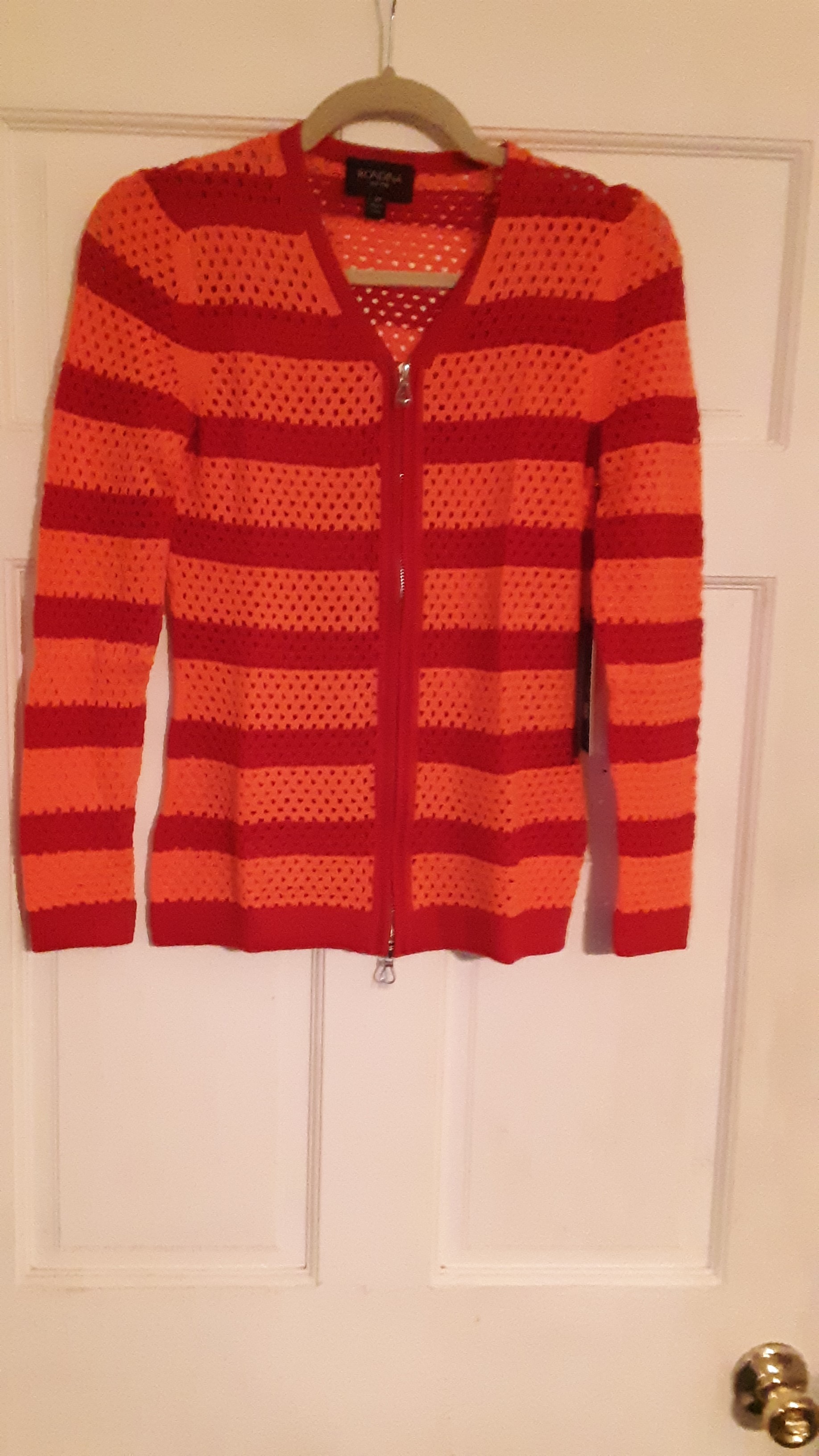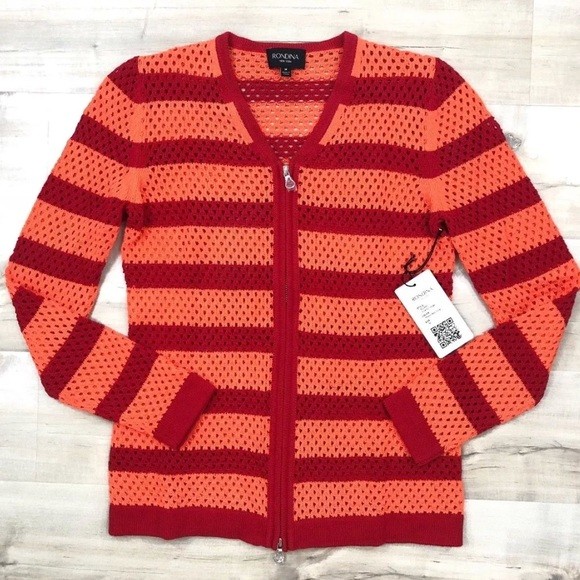 Rondina Stripe Zipper Cardigan Red/Coral, XS